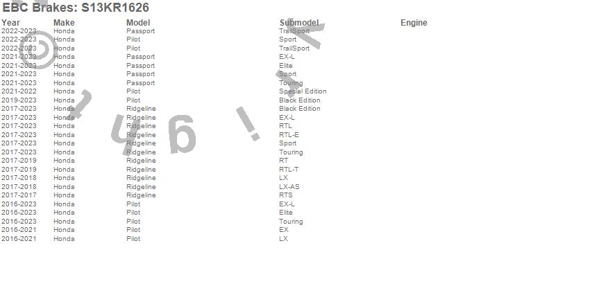 Below is an abbreviated list of applications for the S13 Kits Yellowstuff and RK Rotors.