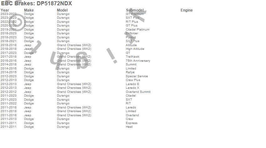 Below is an abbreviated list of applications for the Bluestuff NDX Full Race Brake Pads.
