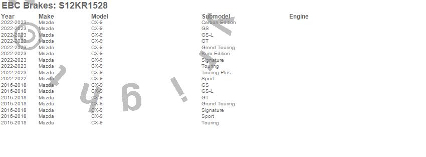 Below is an abbreviated list of applications for the S12 Kits Redstuff and RK Rotors.