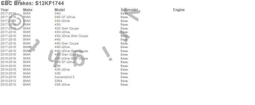 Below is an abbreviated list of applications for the S12 Kits Redstuff and RK Rotors.