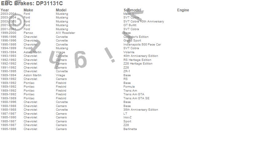 AIV Roadster, Camaro, Corvette, Firebird, Mustang, Virage, Aston Martin, Chevrolet, Ford, Panoz, Pontiac, 2004, 2003, 2001, 2000, 1999, 1998, 1997, 1996, 1995