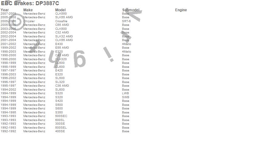300SE, 400SE, 500SEC, 500SEL, 600SL, C32 AMG, C36 AMG, C43 AMG, C55 AMG, CL500, CL600, CLK320, CLK500, CLK55 AMG, CLK550, Crossfire, E320, E420, E430, E55 AMG