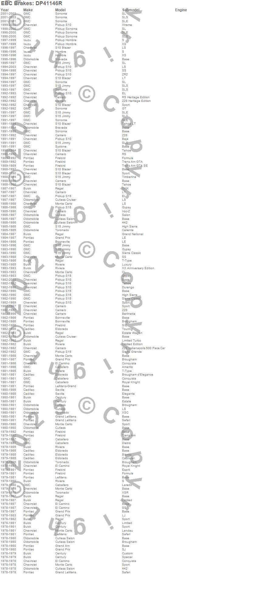 Bonneville, Bravada, Caballero, Camaro, Century, Cutlass, Cutlass Cruiser, Cutlass Salon, El Camino, Eldorado, Firebird, Grand Am, Grand LeMans, Grand Prix, Hombre, LeMans, Monte Carlo, Regal, Riviera, S10 Blazer
