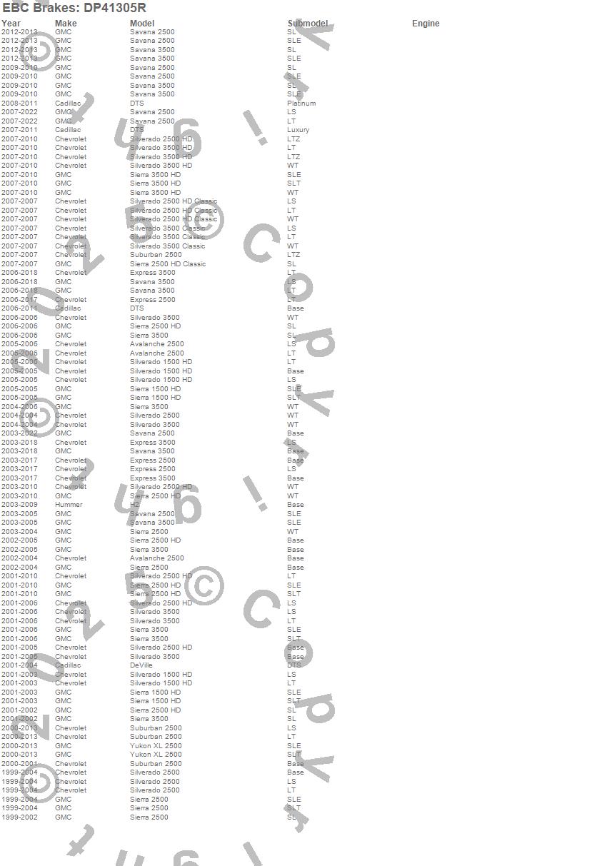 Avalanche 2500, DeVille, DTS, Express 2500, Express 3500, H2, Savana 2500, Savana 3500, Sierra 1500 HD, Sierra 2500, Sierra 2500 HD, Sierra 2500 HD Classic, Sierra 3500, Sierra 3500 HD, Silverado 1500 HD, Silverado 2500, Silverado 2500 HD, Silverado 2500 HD Classic, Silverado 3500, Silverado 3500 Classic