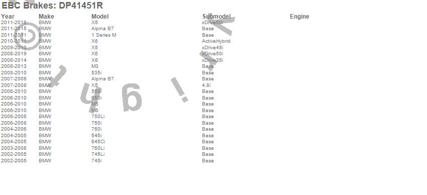 Below is an abbreviated list of applications for the Yellowstuff Street And Track Brake Pads.