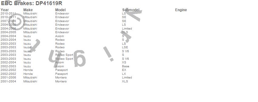 Axiom, Endeavor, Montero, Passport, Rodeo, Rodeo Sport, Honda, Isuzu, Mitsubishi, 2011, 2010, 2008, 2007, 2006, 2005, 2004, 2003, 2002, 2001