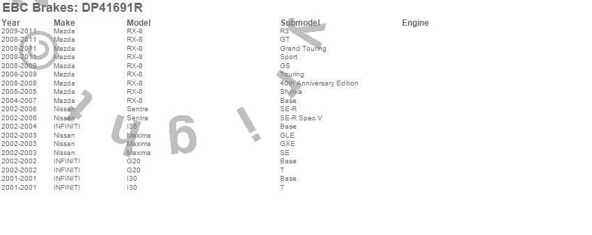 G20, I30, I35, Maxima, RX-8, Sentra, INFINITI, Mazda, Nissan, 2011, 2010, 2009, 2008, 2007, 2006, 2005, 2004, 2003, 2002, 2001