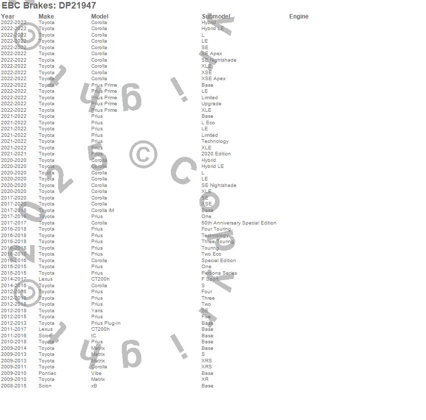 Corolla, Corolla iM, CT200h, Matrix, Prius, Prius Plug-In, Prius Prime, tC, Vibe, xB, Yaris, Lexus, Pontiac, Scion, Toyota, 2022, 2021, 2020, 2019, 2018