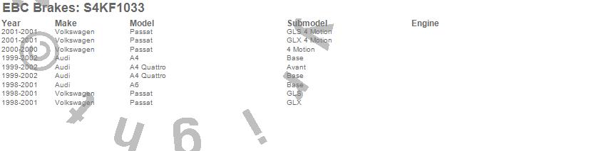 Below is an abbreviated list of applications for the S4 Kits Redstuff and USR Rotor.