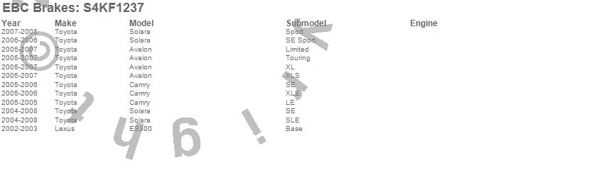 Below is an abbreviated list of applications for the S4 Kits Redstuff and USR Rotor.
