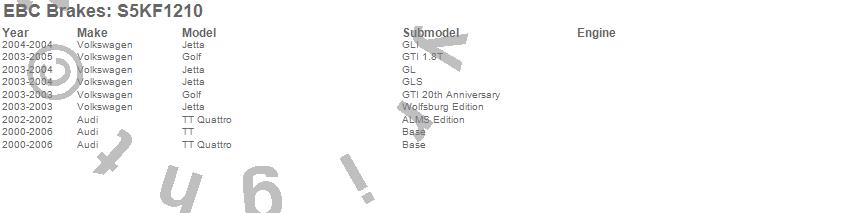 Below is an abbreviated list of applications for the S5 Kits Yellowstuff And GD Rotors.