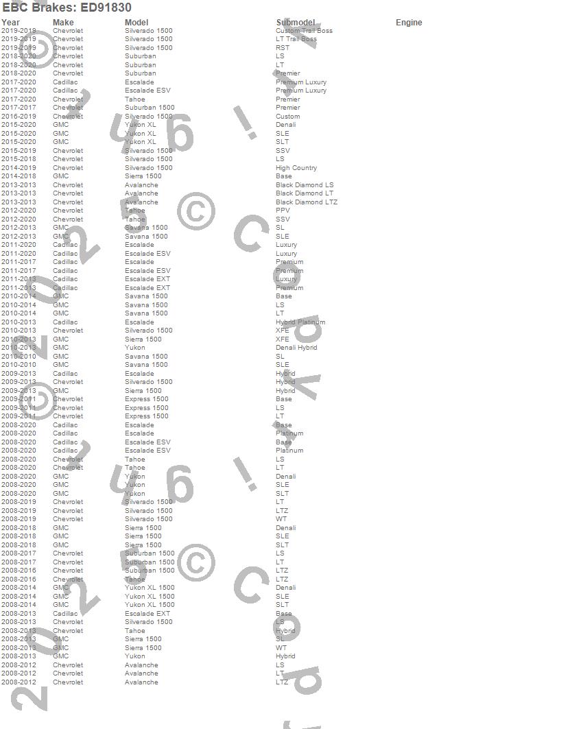 Below is an abbreviated list of applications for the Truck/SUV Extra Duty Brake Pads.