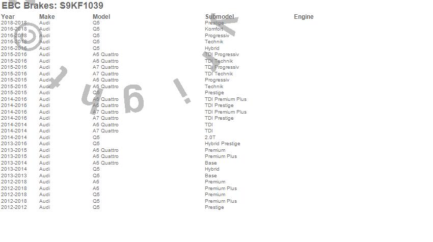 Below is an abbreviated list of applications for the S9 Kits Yellowstuff and USR Rotors.