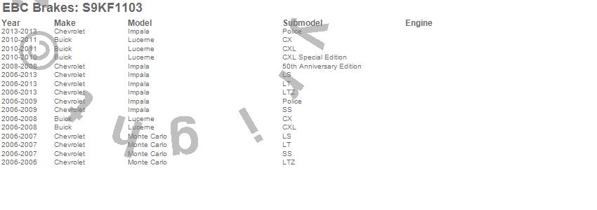 Below is an abbreviated list of applications for the S9 Kits Yellowstuff and USR Rotors.