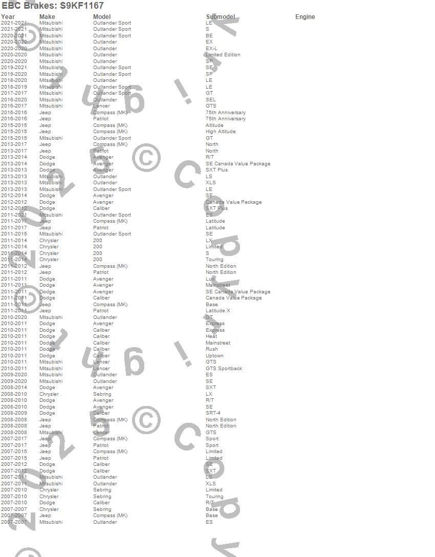 Below is an abbreviated list of applications for the S9 Kits Yellowstuff and USR Rotors.