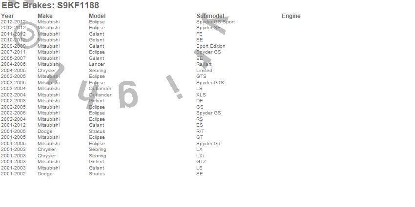 Below is an abbreviated list of applications for the S9 Kits Yellowstuff and USR Rotors.