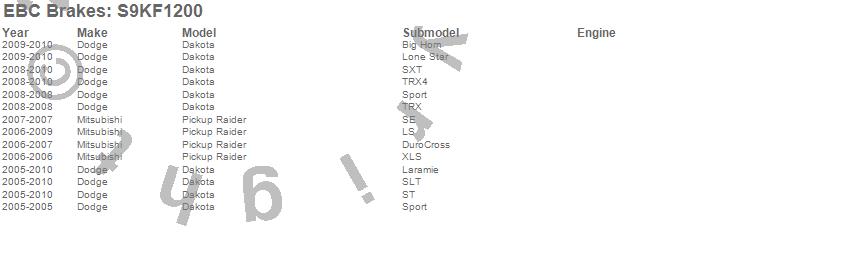 Below is an abbreviated list of applications for the S9 Kits Yellowstuff and USR Rotors.