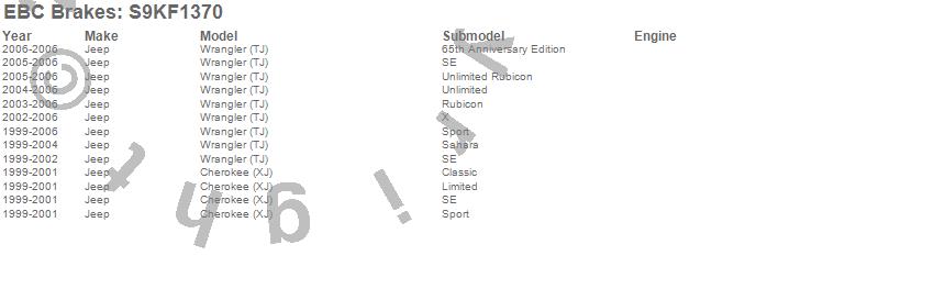 Below is an abbreviated list of applications for the S9 Kits Yellowstuff and USR Rotors.
