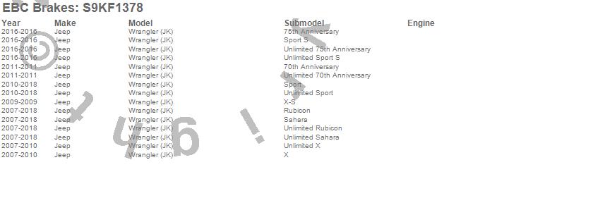 Below is an abbreviated list of applications for the S9 Kits Yellowstuff and USR Rotors.