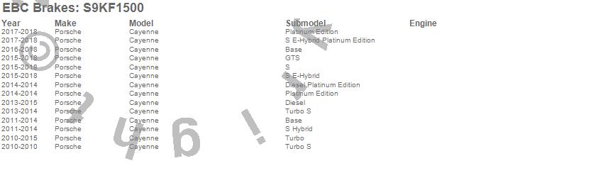 Below is an abbreviated list of applications for the S9 Kits Yellowstuff and USR Rotors.