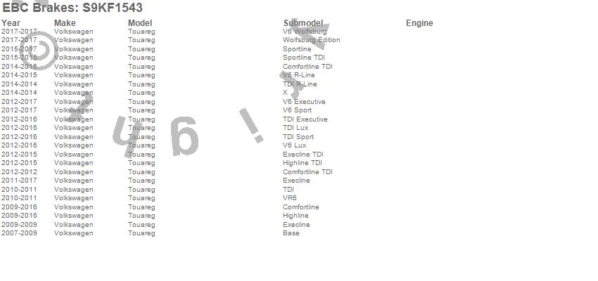 Below is an abbreviated list of applications for the S9 Kits Yellowstuff and USR Rotors.