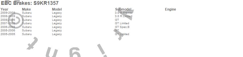 Below is an abbreviated list of applications for the S9 Kits Yellowstuff and USR Rotors.