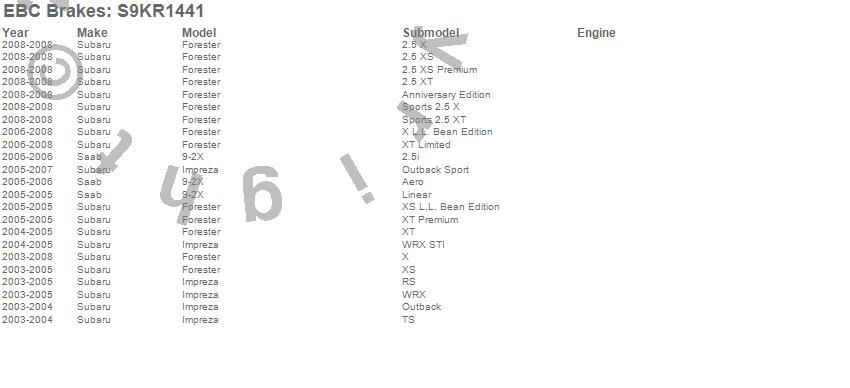 Below is an abbreviated list of applications for the S9 Kits Yellowstuff and USR Rotors.