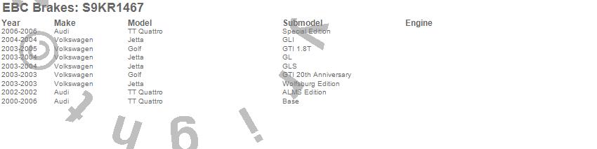 Below is an abbreviated list of applications for the S9 Kits Yellowstuff and USR Rotors.