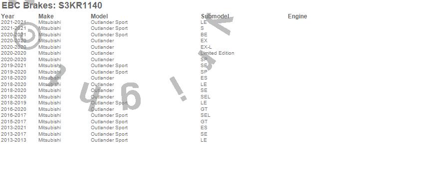 Below is an abbreviated list of applications for the S3 Kits Greenstuff 6000 and GD Rotors Truck/SUV.