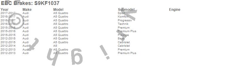 Below is an abbreviated list of applications for the S9 Kits Yellowstuff and USR Rotors.