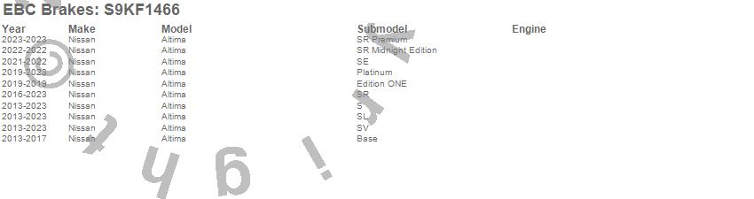 Below is an abbreviated list of applications for the S9 Kits Yellowstuff and USR Rotors.