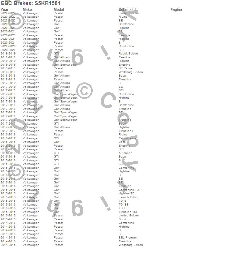 Below is an abbreviated list of applications for the S5 Kits Yellowstuff And GD Rotors.