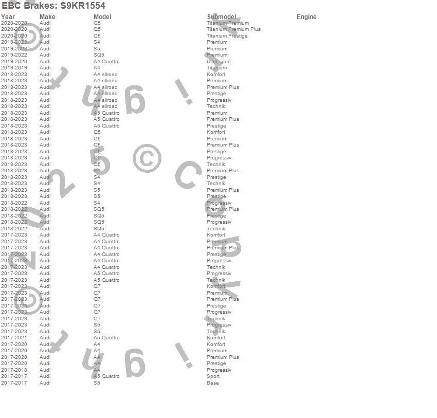 Below is an abbreviated list of applications for the S9 Kits Yellowstuff and USR Rotors.