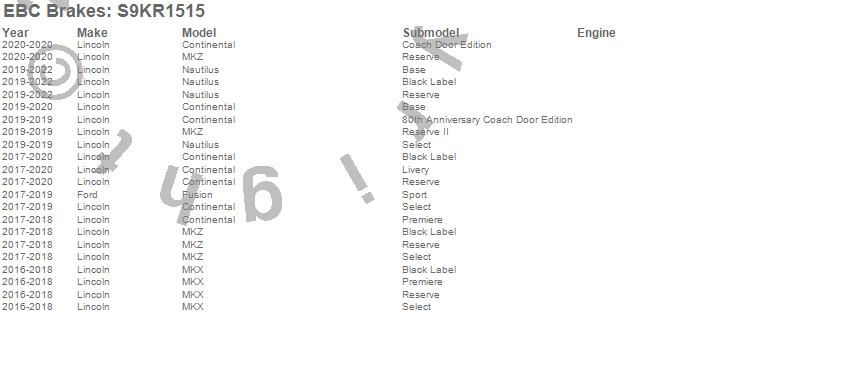Below is an abbreviated list of applications for the S9 Kits Yellowstuff and USR Rotors.