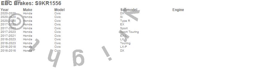 Below is an abbreviated list of applications for the S9 Kits Yellowstuff and USR Rotors.
