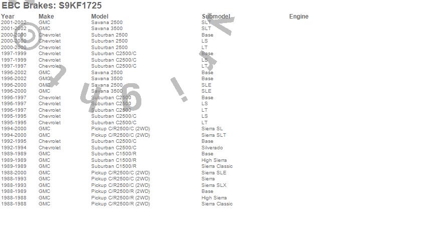 Below is an abbreviated list of applications for the S9 Kits Yellowstuff and USR Rotors.