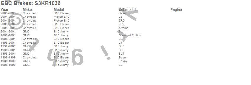 Below is an abbreviated list of applications for the S3 Kits Greenstuff 6000 and GD Rotors Truck/SUV.