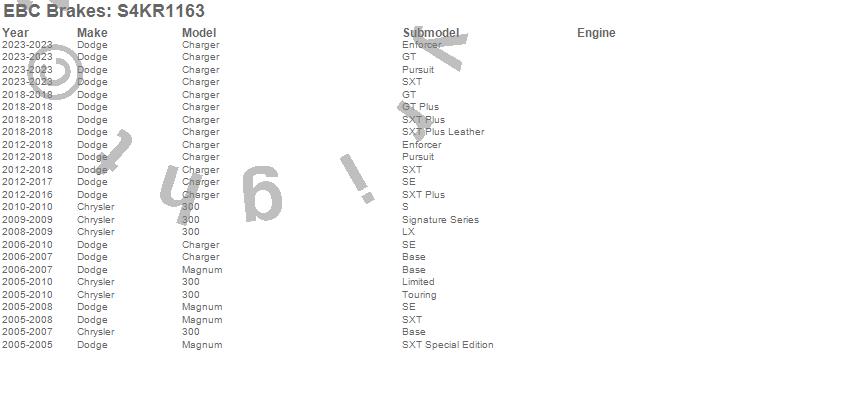 Below is an abbreviated list of applications for the S4 Kits Redstuff and USR Rotor.