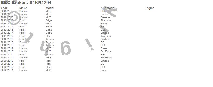 Below is an abbreviated list of applications for the S4 Kits Redstuff and USR Rotor.