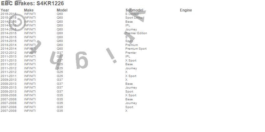 Below is an abbreviated list of applications for the S4 Kits Redstuff and USR Rotor.