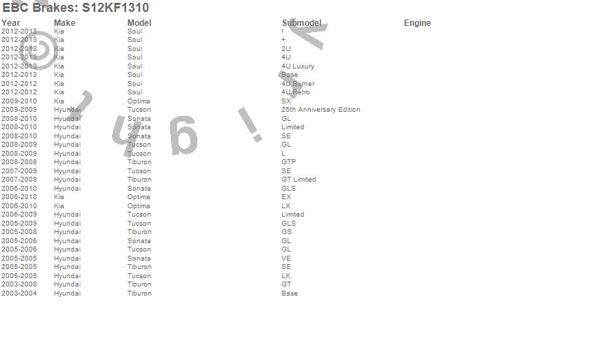 Below is an abbreviated list of applications for the S12 Kits Redstuff and RK Rotors.