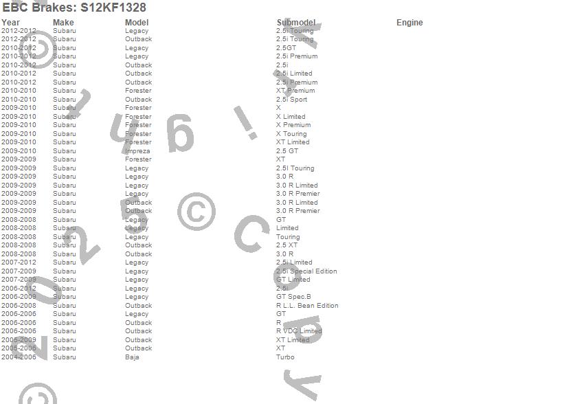 Below is an abbreviated list of applications for the S12 Kits Redstuff and RK Rotors.