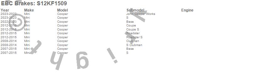 Below is an abbreviated list of applications for the S12 Kits Redstuff and RK Rotors.