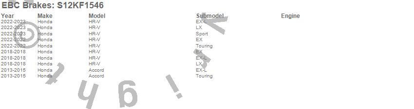 Below is an abbreviated list of applications for the S12 Kits Redstuff and RK Rotors.