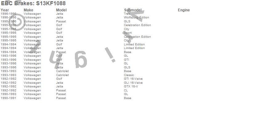 Below is an abbreviated list of applications for the S13 Kits Yellowstuff and RK Rotors.