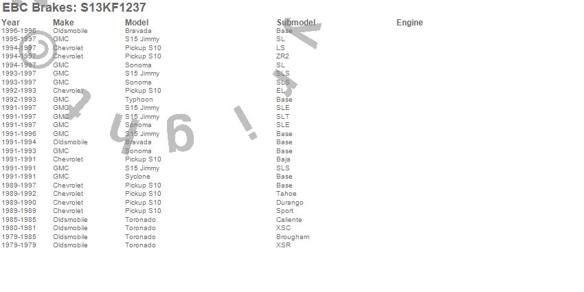 Below is an abbreviated list of applications for the S13 Kits Yellowstuff and RK Rotors.