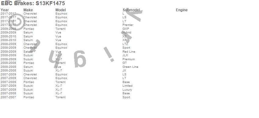 Below is an abbreviated list of applications for the S13 Kits Yellowstuff and RK Rotors.