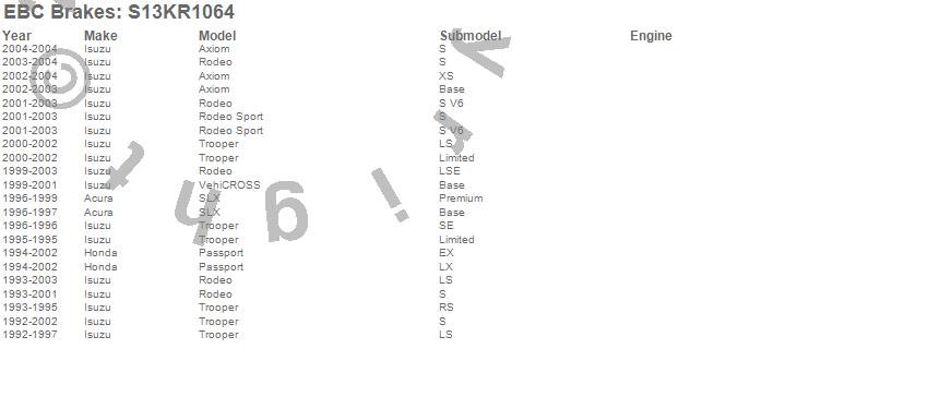 Below is an abbreviated list of applications for the S13 Kits Yellowstuff and RK Rotors.