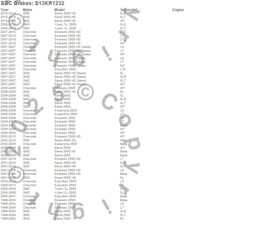 Below is an abbreviated list of applications for the S13 Kits Yellowstuff and RK Rotors.