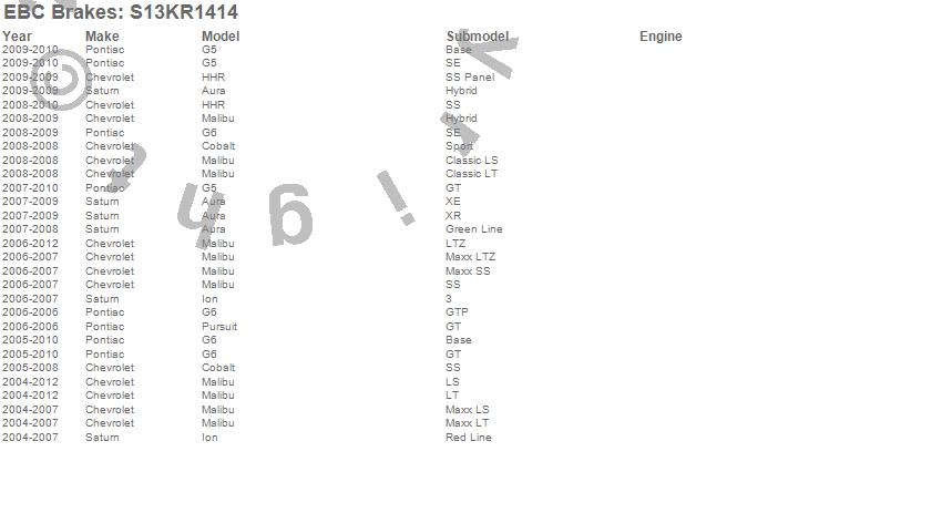 Below is an abbreviated list of applications for the S13 Kits Yellowstuff and RK Rotors.